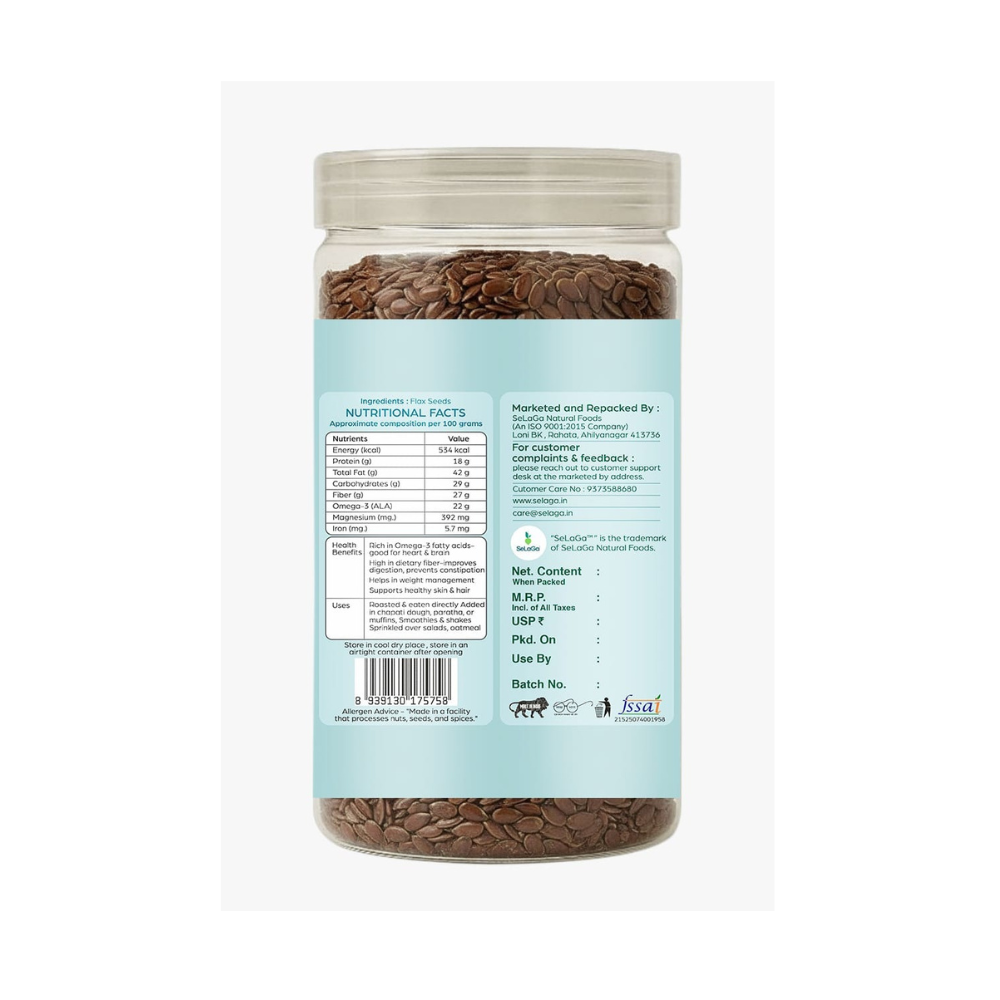 SeLaGa Premium Flax Seeds (Alsi Beej) – Omega-3 Rich Super Seeds for Heart Health, Skin Glow & Digestion | 200g Premium Reusable Jar