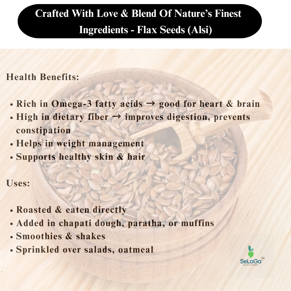 Discover the natural goodness of SeLaGa Premium Flax Seeds (Alsi Beej) — a powerhouse of plant-based nutrition designed to support a healthy lifestyle. Sourced from top-quality farms and hygienically packed in a premium reusable jar, these omega-3 rich seeds bring you benefits for heart, skin, digestion, and daily wellness.