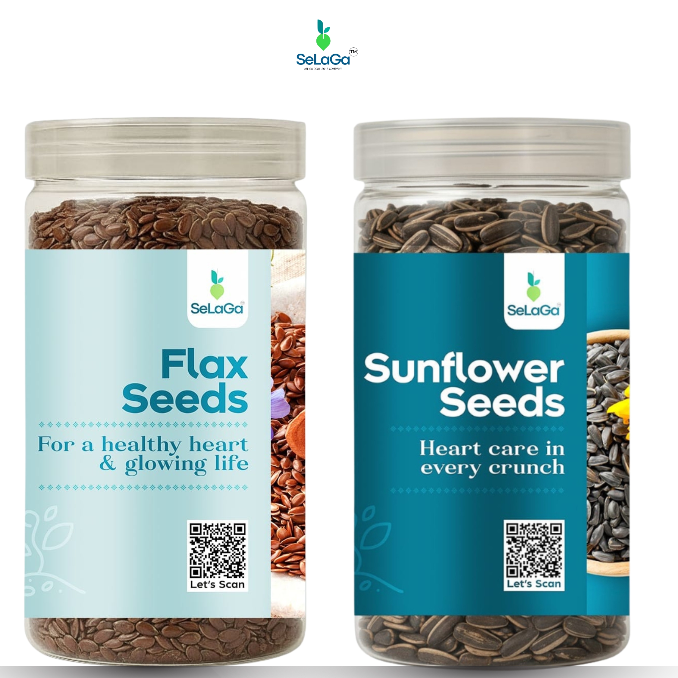 Selaga Heart Health Combo – Flax Seeds & Sunflower Seeds | Omega-3, Fiber & Antioxidant-Rich Super Seeds for Heart, Skin & Wellness- (2×250 g Premium Jars)