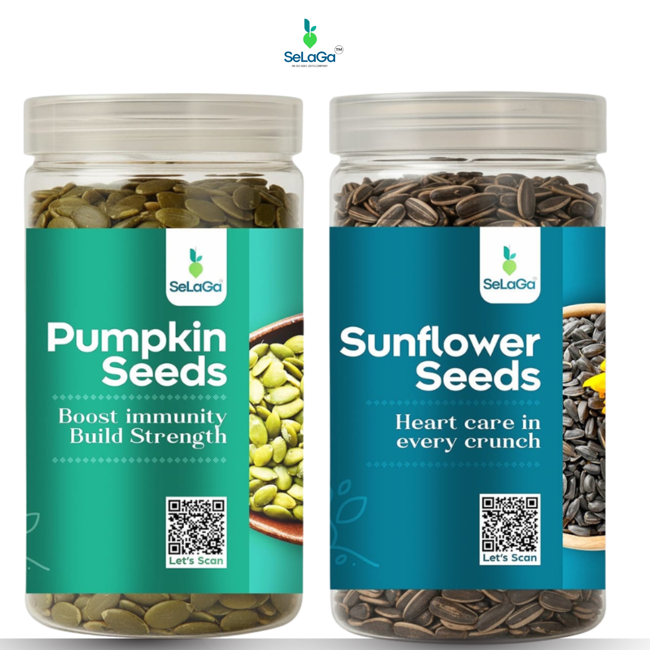 Selaga Protein Power Combo – Pumpkin & Sunflower Seeds | High Protein & Fiber | Natural Super Seeds for Energy, Muscle & Heart Health (2×250 g Premium Jars)