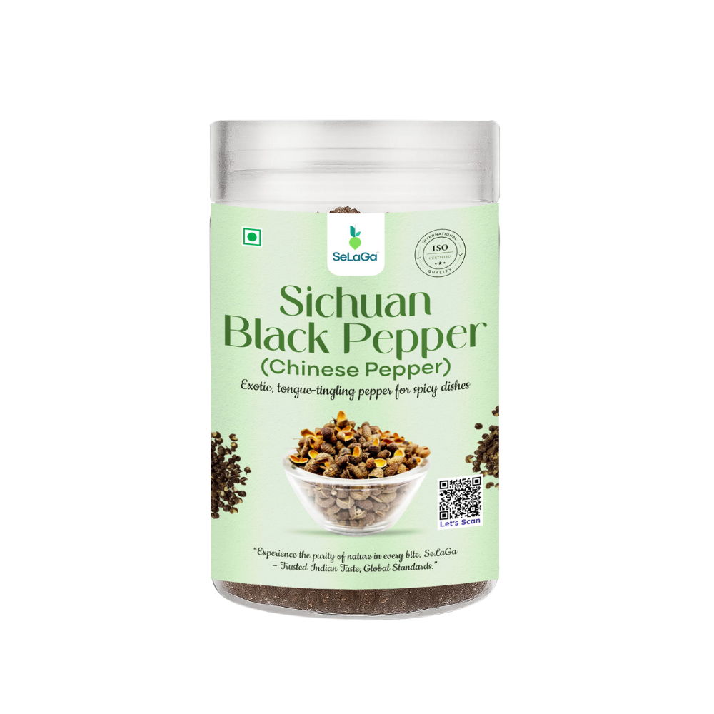 At SeLaGa Natural Foods, we ensure that our Sichuan Black Pepper is naturally harvested, sun-dried, and hygienically packed to lock in freshness, aroma, and purity. With zero preservatives and 100% natural sourcing, you get only the best quality spice directly to your kitchen.