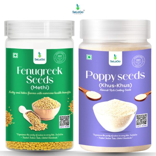 Bitter-Sweet Balance Duo โ Fenugreek Seeds (250 Gram) + Poppy Seeds (50 Gram) – Premium Reusable Jars
